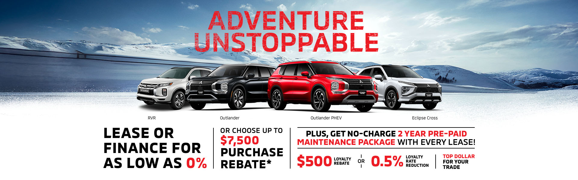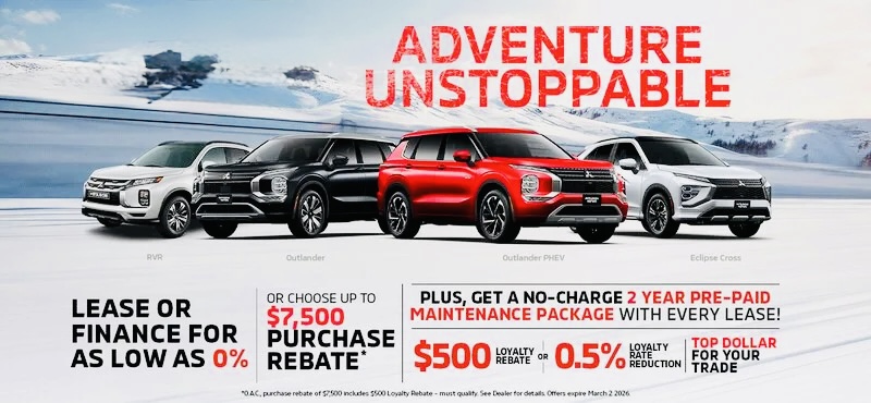 Disclaimer: Finance and Lease offers on approved credit. Regional offers, lease and finance conditions apply. See your local Mitsubishi dealer for more information. Use of any calculation and/or tools on https://www.cambridge-mitsubishi.ca does not constitute an offer of direct financing or any particular lease, finance, purchase option or transaction. Calculation and tools are intended for illustrative purposes only. Rates and requirements may vary depending on credit worthiness. Every effort is made to ensure the accuracy of the content on the pages on https://www.cambridge-mitsubishi.ca. In the event of a discrepancy, error or omission, vehicle prices, offers and features as established by Mitsubishi Canada and participating Mitsubishi dealers in Canada, will prevail.